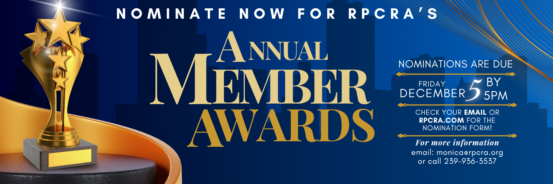 Help us honor those among us who go above and beyond! The RPCRA Awards recognize outstanding REALTORS®, brokers, educators, affiliates and new members who have demonstrated exceptional commitment over the past year and beyond. Please nominate a deserving colleague by completing the nomination form by 5 p.m. December 5, 2025.