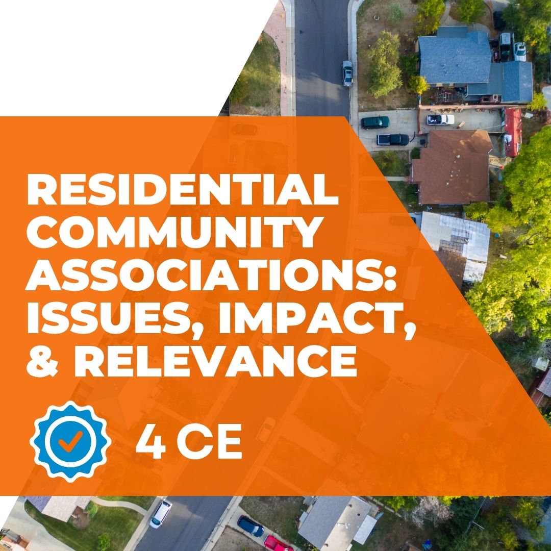 Community associations are a significant slice of the housing market in this state. And yet, many people have very little knowledge about community associations, even if they intend to purchase property in a community association. Take this course and receive an overview of some important topics related to Residential Community Associations. Identify various forms of residential community associations in Florida. Understand the unique characteristics of community association living. Explain the sources of authority in a community association.