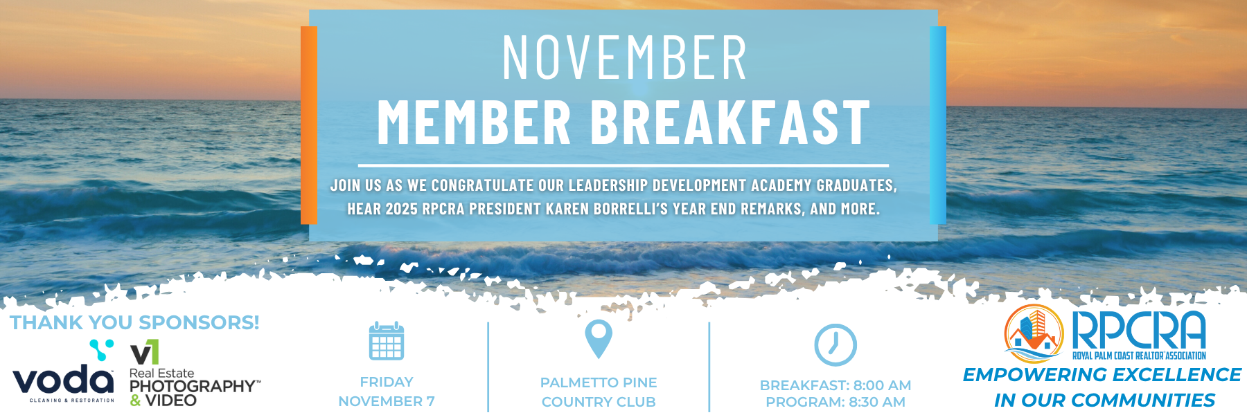 Join us as we congratulate our Leadership Development Academy graduates, hear 2025 RPCRA President Karen Borrelli's year-end remarks, and more. President Borrelli will provide a thoughtful review of the year, highlighting key accomplishments and the impact of our members' dedication. This gathering is also an opportunity to recognize the collective efforts that made 2025 a success and to celebrate the graduates who represent the future of our profession. Don't miss this final member breakfast of the year as we come together in recognition and fellowship.