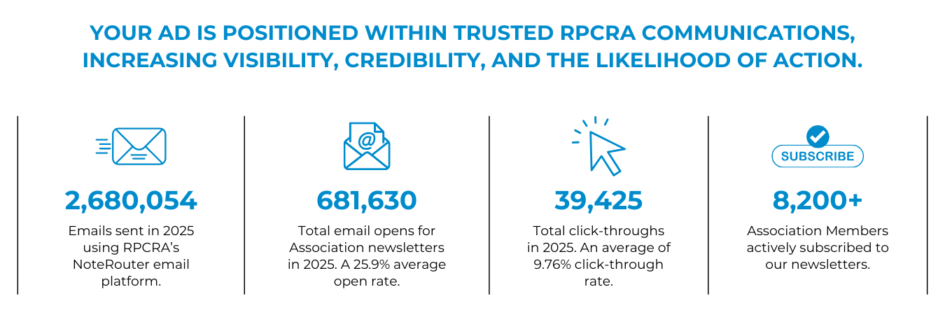 RPCRA's weekly e-Newsletters land directly in members' inboxes and deliver strong, measurable engagement.